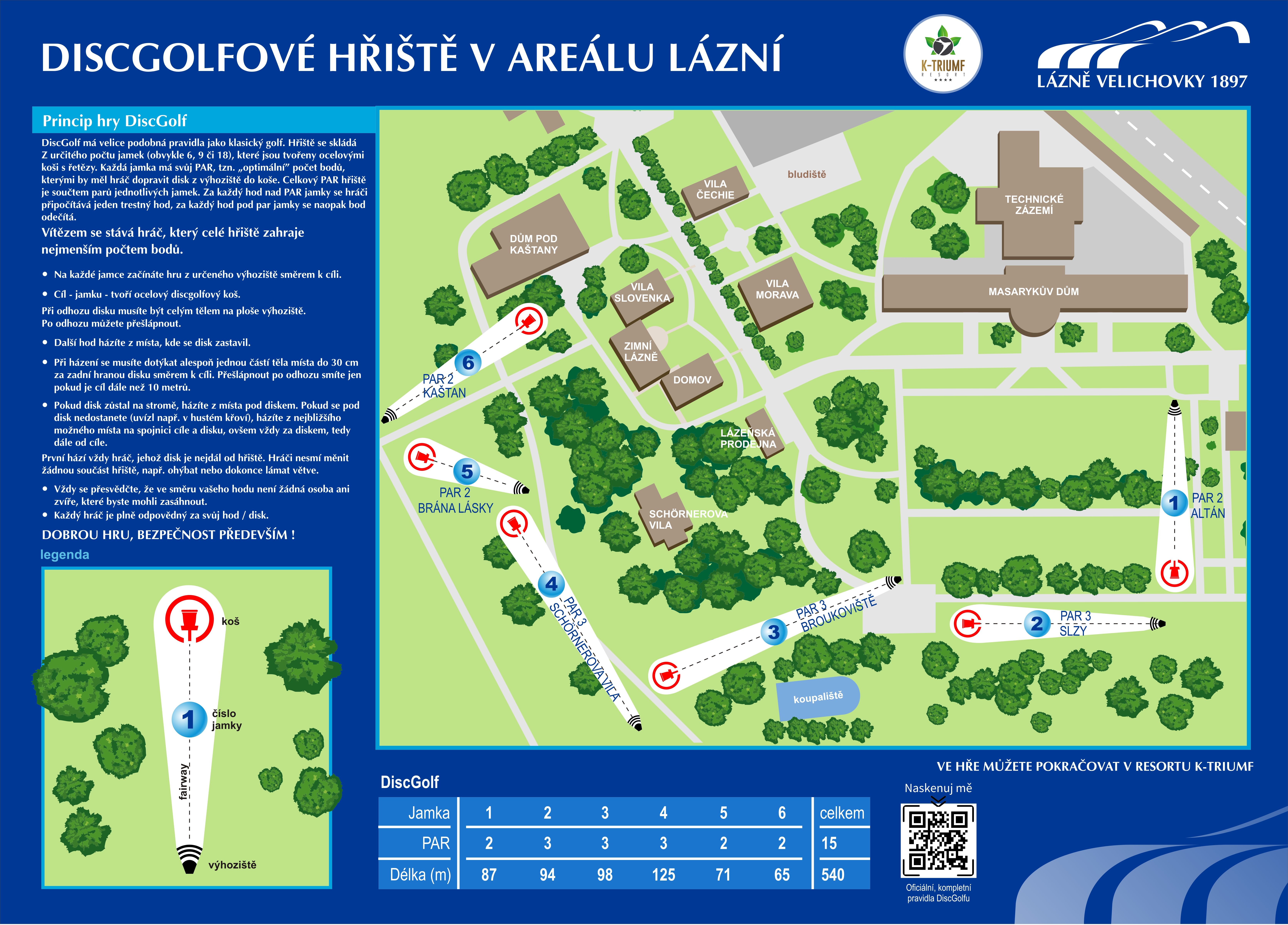 Discgolf je ideální kombinací zábavy, pohybu a pobytu v přírodě. Vezměte přátele, rodinu nebo kolegy a objevte nový způsob, jak si užít lázeňský park Velichovky.