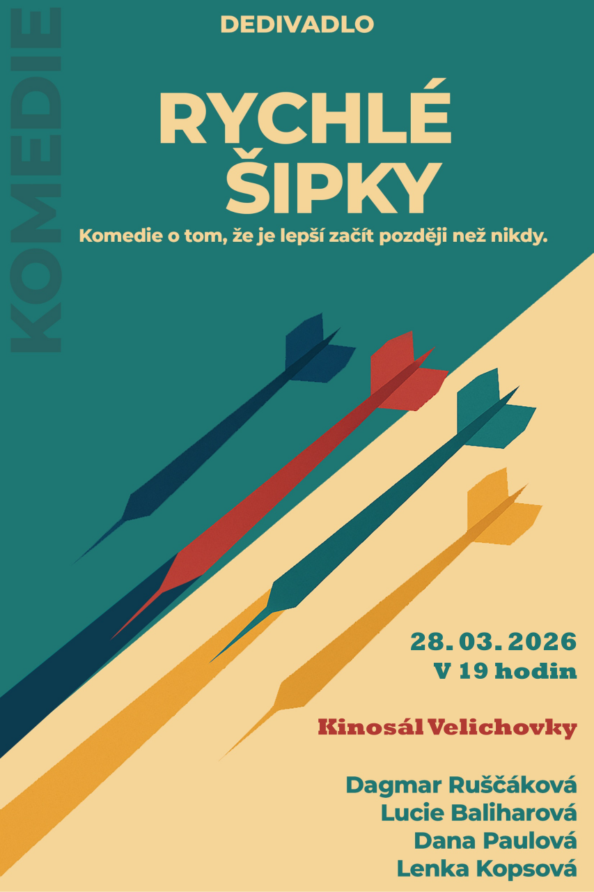 Srdečně vás zveme na jedinečný večer plný humoru, napětí i nečekaných zvratů! Přijďte si užít originální divadelní představení „Rychlé šipky“ a nechte se vtáhnout do děje, který pobaví i překvapí.
