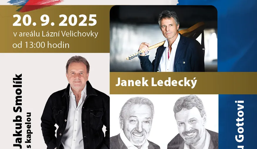 Přijďte si užít druhý ročník oblíbeného Festivalu Československých hudebních legend, který se uskuteční v nádherném parku Lázní Velichovky. Čeká Vás nezapomenutelné odpoledne plné ikonických melodií, legendárních interpretů a přátelské atmosféry.