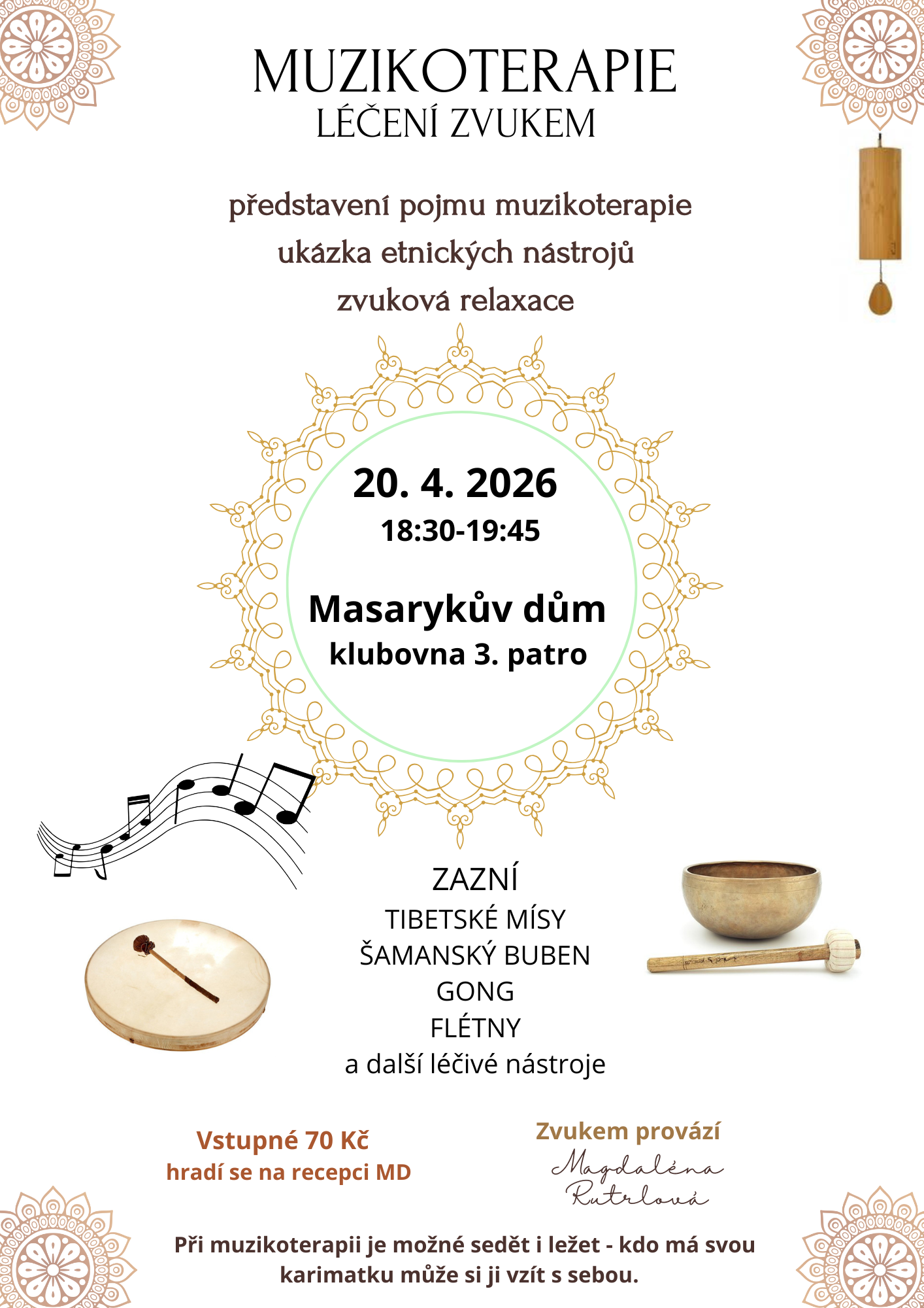 Zveme vás na jedinečný večer plný léčivých tónů a hluboké relaxace. Objevte sílu muzikoterapie, která harmonizuje tělo i mysl prostřednictvím zvukových vibrací.