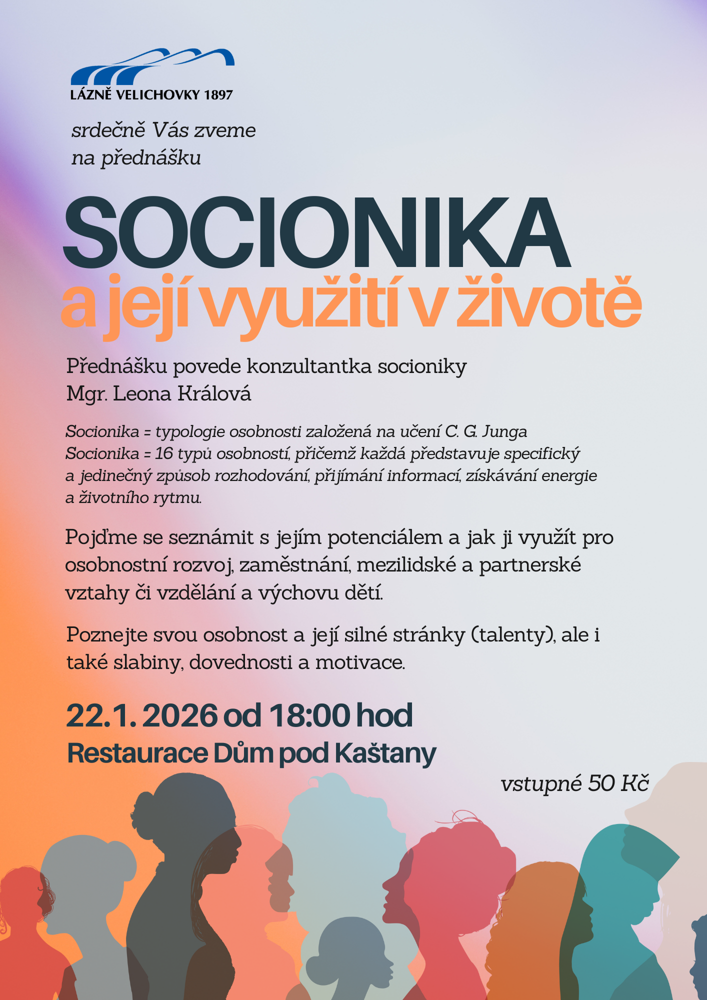 Srdečně vás zveme na inspirativní přednášku, díky které objevíte, jak vám socionika může pomoci v osobnostním rozvoji, vztazích, zaměstnání i při výchově dětí.