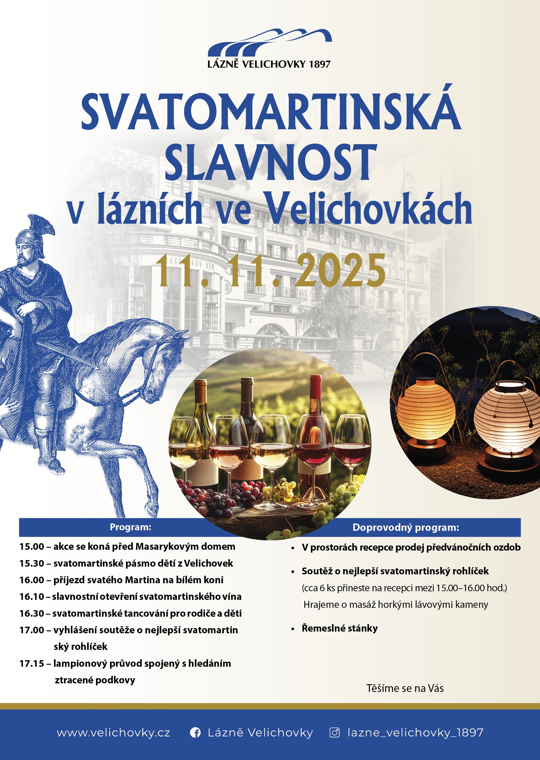 Srdečně vás zveme do Lázní Velichovky na Svatomartinské slavnosti, které se uskuteční v úterý 11. listopadu 2025 od 15:30 hod. 🍷