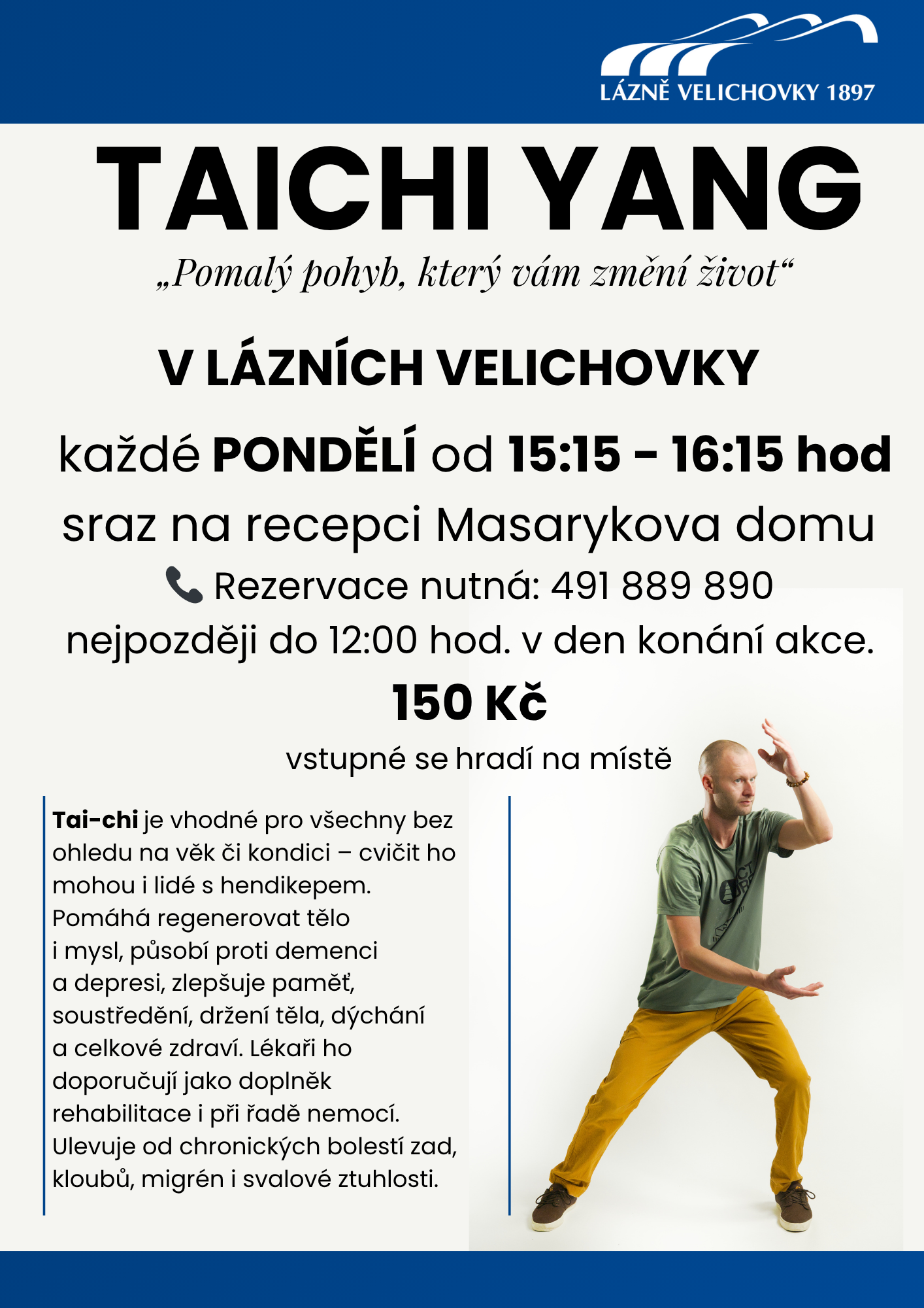 Tai-chi pomáhá regenerovat organismus, ulevuje od chronických bolestí zad, kloubů, migrén a svalového napětí. Podporuje paměť, soustředění, držení těla i dýchání. Lékaři ho doporučují jako účinný doplněk rehabilitace a prevenci řady civilizačních nemocí – včetně deprese a demence.