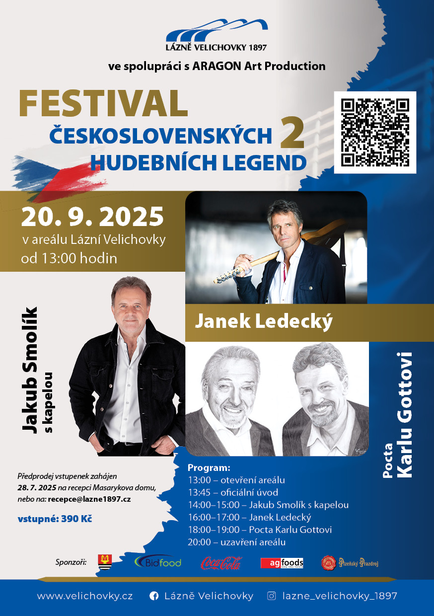 Zveme vás na jedinečný hudební festival plný nostalgie, legendárních hitů a výjimečné atmosféry – přímo v srdci Lázní Velichovky.